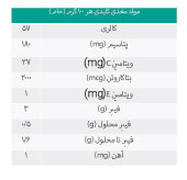 مواد مغذی کلیدی هر 100 گرم (خام)