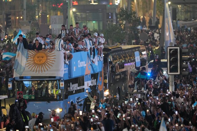 تیم ملی فوتبال آرژانتین پس از قهرمانی در جام جهانی به خیابانهای قطر آمد و با طرفداران آرژانتین شادی کرد.