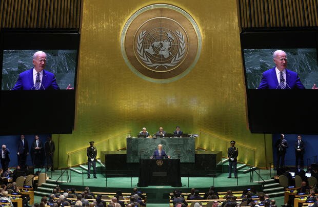 بایدن گفت: روسیه به تنهایی بر سر راه صلح ایستاده است زیرا قیمت روسیه برای صلح تسلیم شدن اوکراین، خاک اوکراین و فرزندان اوکراین است. روسیه خسته خواهد شد. اما از شما می پرسم: اگر ما اصول اصلی ایالات متحده را برای راضی کردن یک متجاوز کنار بگذاریم، آیا هر کشور عضوی در این سازمان میتواند مطمئن باشد که پس از نابودی اوکراین حفظ میشود؟ آیا استقلال هر ملتی امنیت دارد؟ واشنگتن همچنان در کنار مردم اوکراین میایستد تا از حاکمیت و تمامیت ارضی و آزادی خود دفاع کند.