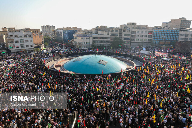 مردم تهران و سایر شهرهای ایران در واکنش به جنایت ارتش رژیم صهیونیستی در قتلعام ۱۰۰۰ نفر از نوزادان، کودکان، دختران، پسران، زنان و مردان غزهای در بیمارستان المعمدانی به خیابانها و میدانهای شهرها آمدند و این جنایت هولناک و ضد انسانی را محکوم کردند.