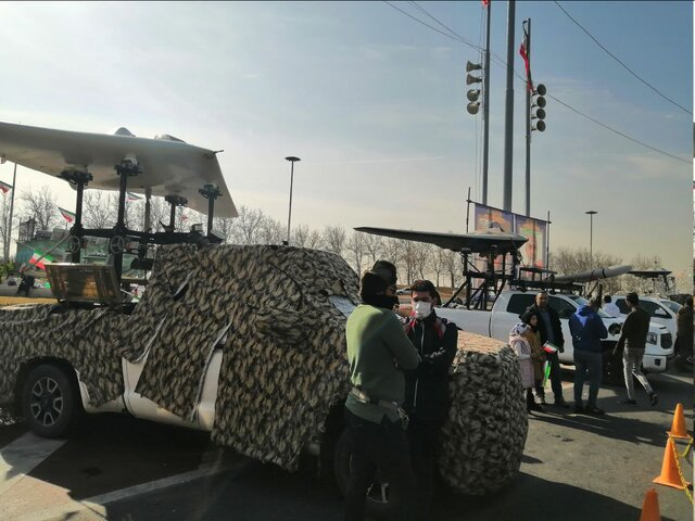 در حاشیه راهپیمایی ۲۲ بهمن، انواع پهپادهای نیروهای مسلح در میدان آزادی در معرض دید مردم قرار گرفته است.
