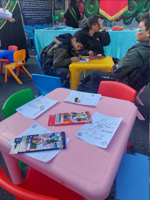 در مسیر راهپیمایی ۲۲ بهمن مردم تهران و جشن سالروز پیروزی انقلاب اسلامی، غرفههای مخصوص کودکان و نوجوانان بر پا شده است که کودکان با حضور در این غرفه ها به نقاشی و خطاطی میپردازند.