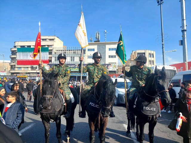 بخشی از یگان اسبسواران نیز در مسیر راهپیمایی مشهود بود.
