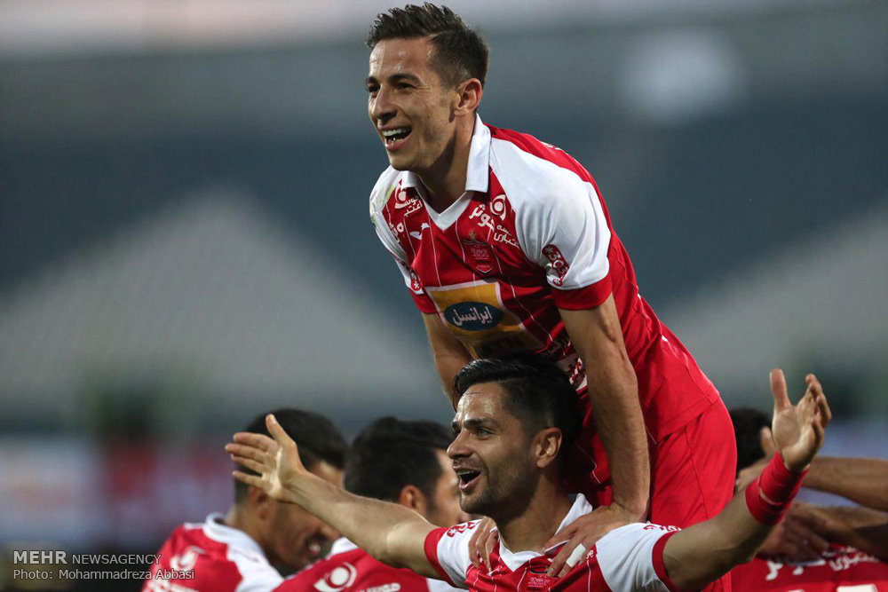 * کلیه بازیکنان و اعضای کادر فنی پرسپولیس بلافاصله پس از اتمام بازی به رختکن رفتند تا خودشان را آماده جشن قهرمانی کنند. هانی نوروزی کاپیتان فقید پرسپولیس که مورد توجه سرخپوشان است جام قهرمانی را بالای سر خواهد برد.