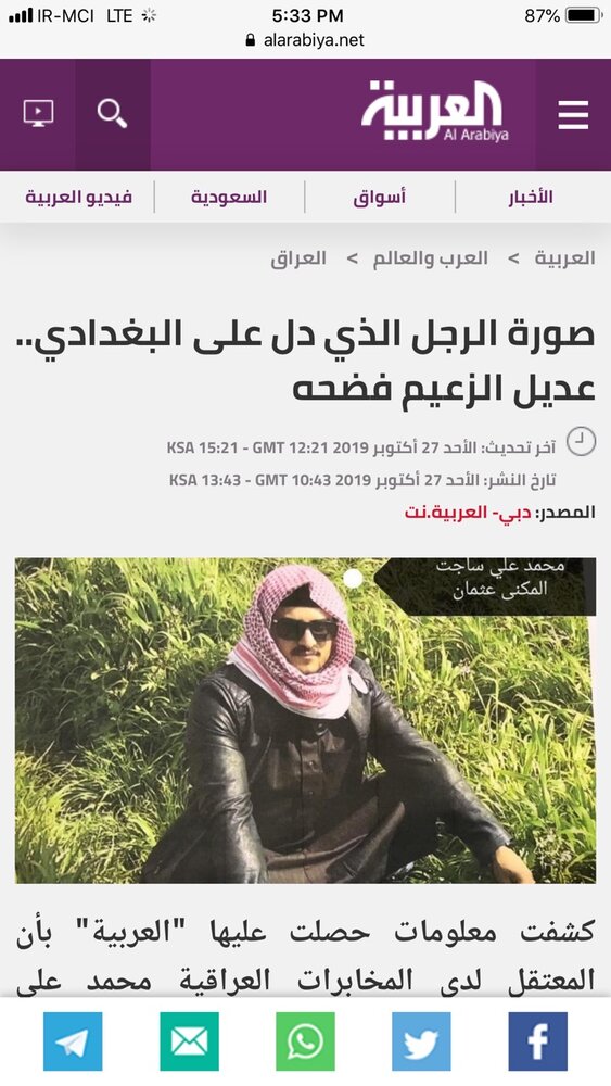 همچنین خبرنگار شبکه تلویزیونی فاکس نیوز در پیامی توئیتری نوشت: هویت البغدادی تایید شده است. آزمایش دیاِناِی این موضوع را ثابت کرده است.