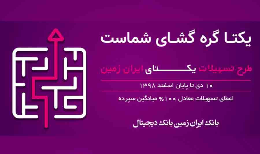 به گزارش پایگاه خبری تجارت آنلاین به نقل از روابط عمومی، بانک ایران زمین به پاس همراهی مشتریان، امکان دریافت تسهیلات یکتای خود را با شرایطی آسان و به میزان مورد نظر مشتریان (تا سقف پانصد میلیون ریال) را فراهم آورده ا ست.