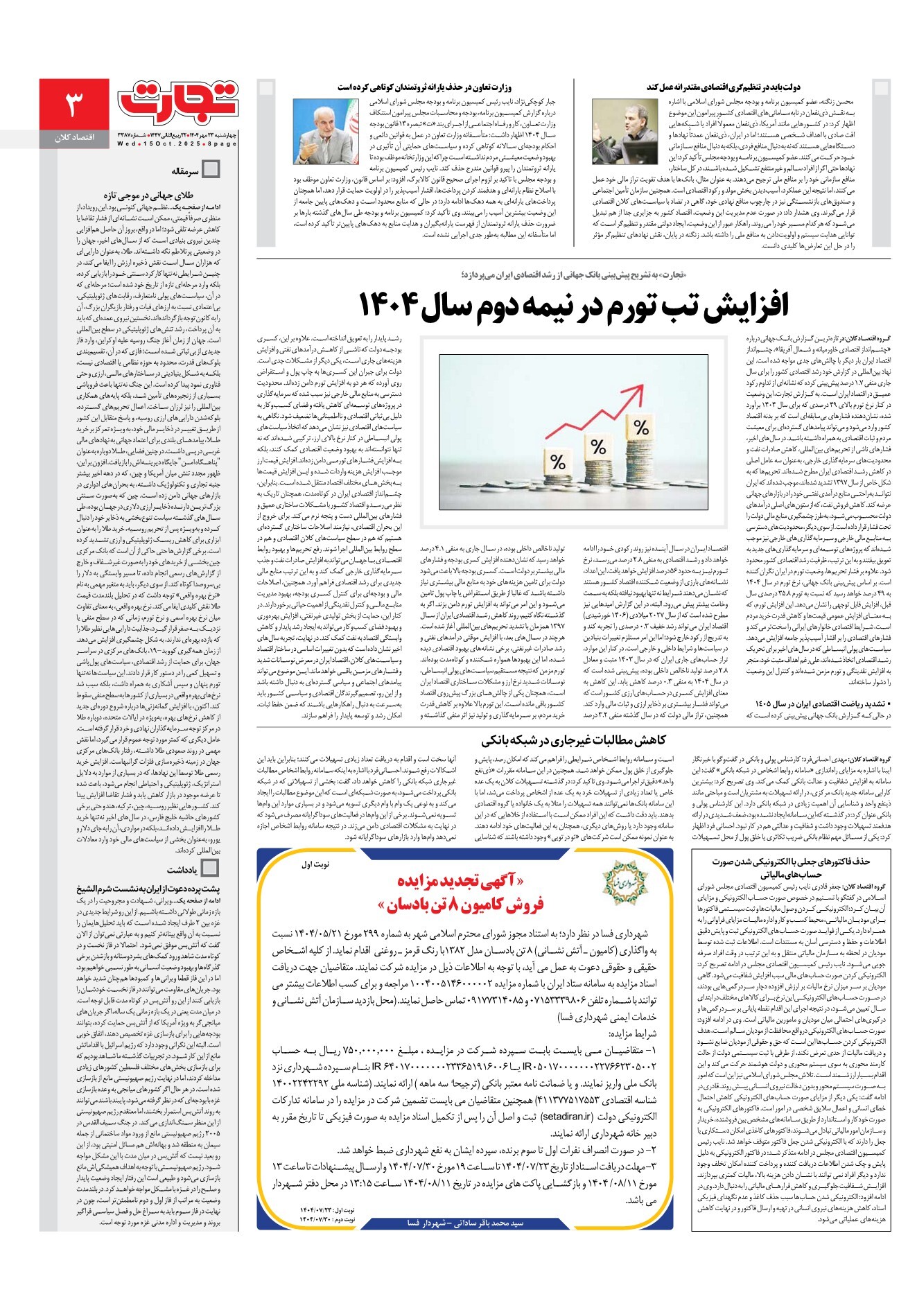 روزنامه تجارت - روزنامه تجارت|چهارشنبه ۲۳ مهر ۱۴۰۴ - شماره ۳۳۸۷