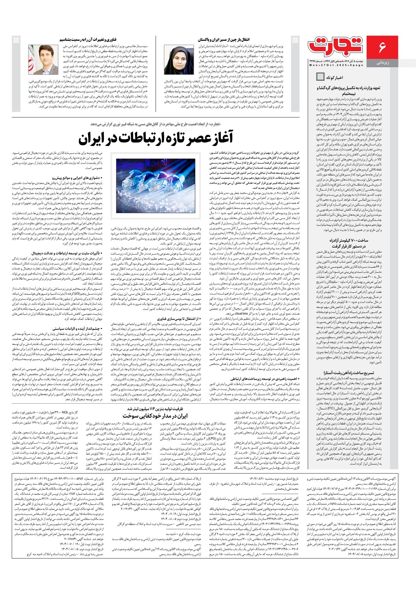 روزنامه تجارت - روزنامه تجارت|دوشنبه ۰۵ آبان ۱۴۰۴ - شماره ۳۳۹۷
