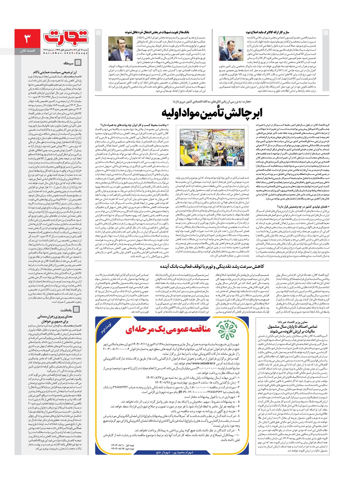 روزنامه تجارت - روزنامه تجارت|شنبه ۱۷ آبان ۱۴۰۴ - شماره ۳۴۰۷