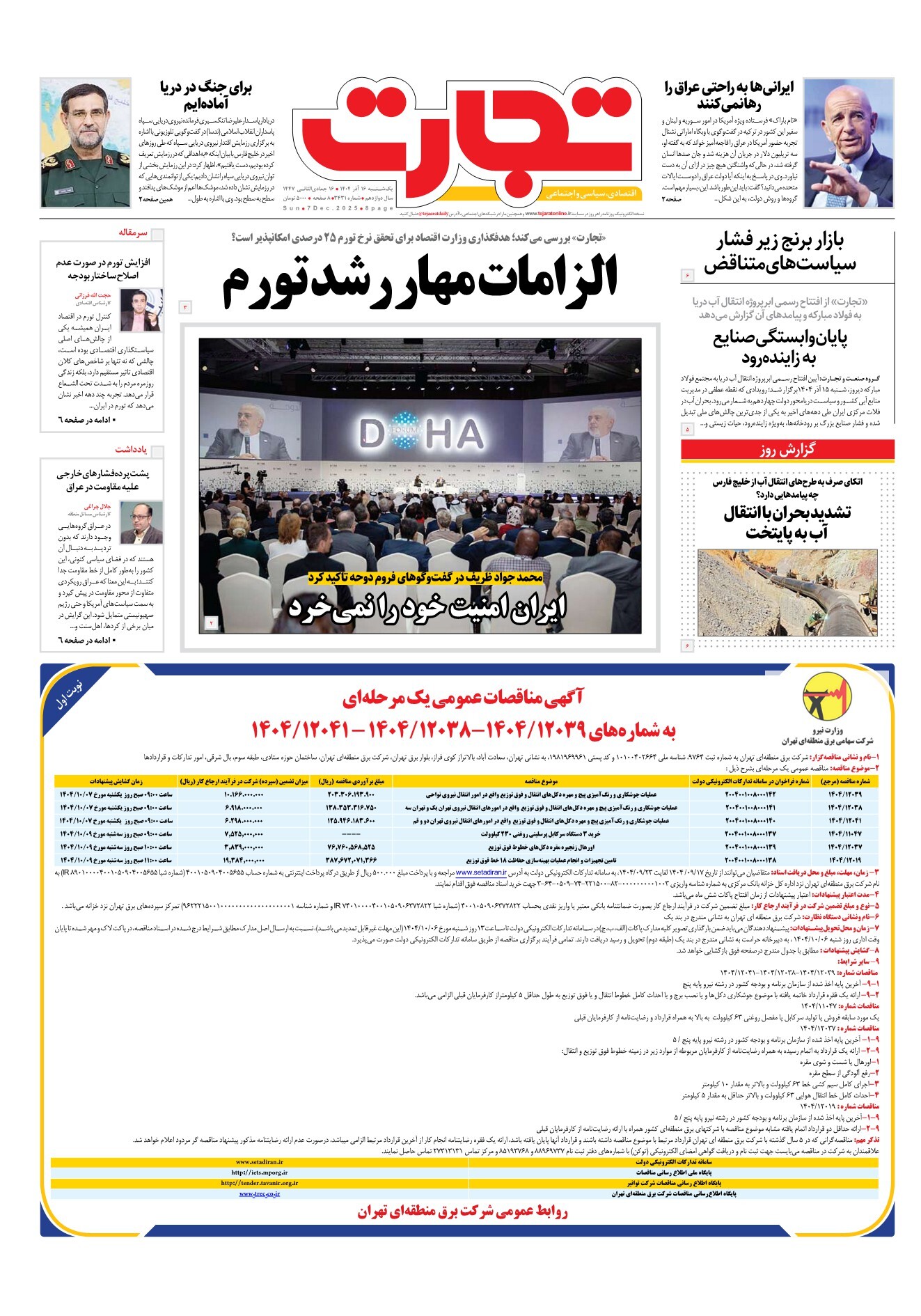 روزنامه تجارت - روزنامه تجارت|يکشنبه ۱۶ آذر ۱۴۰۴ - شماره ۳۴۳۱